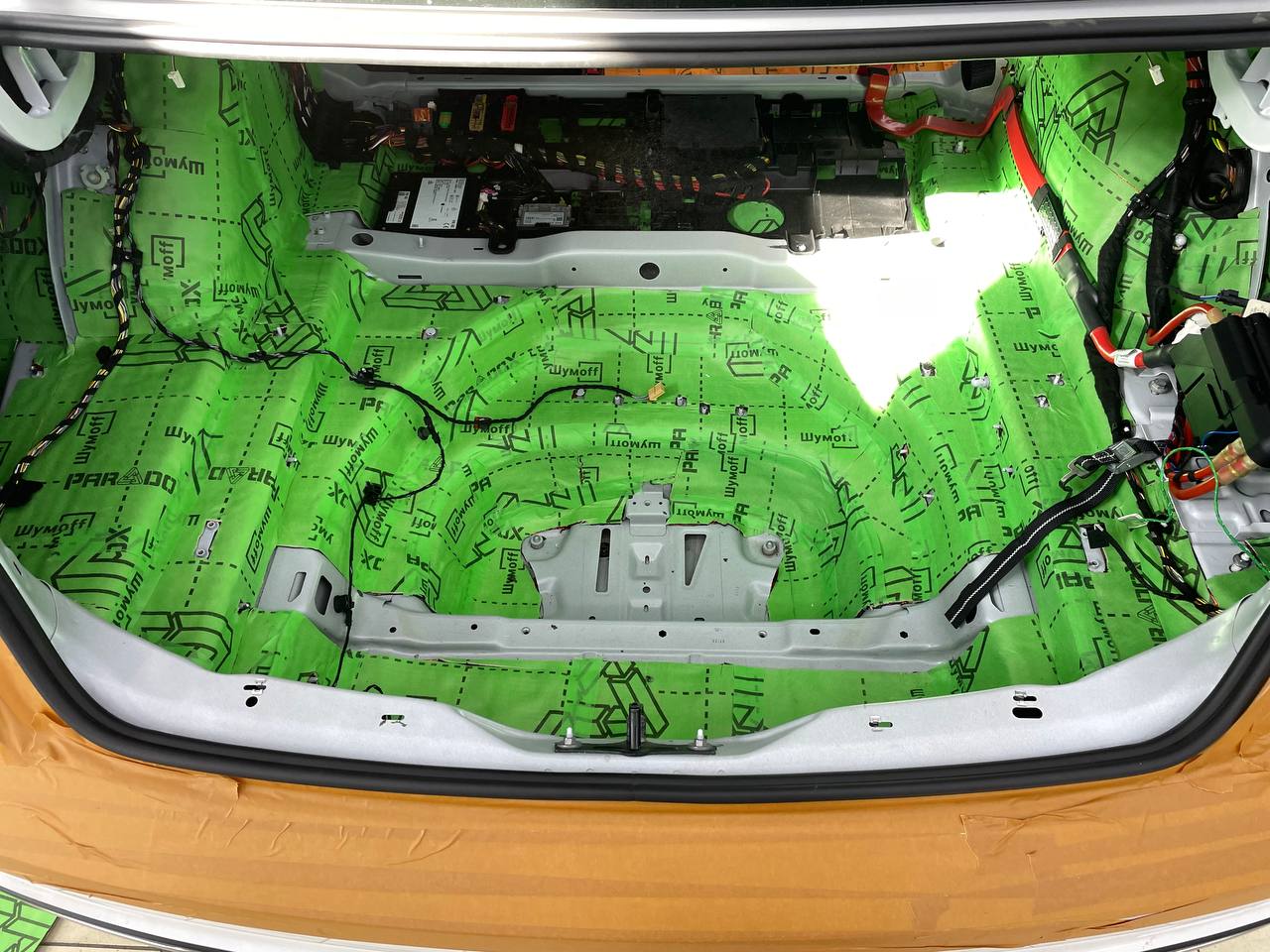 На крышку багажника укладываем виброизоляцию Шумофф М2. На обшивку Шумофф Герметон 7.