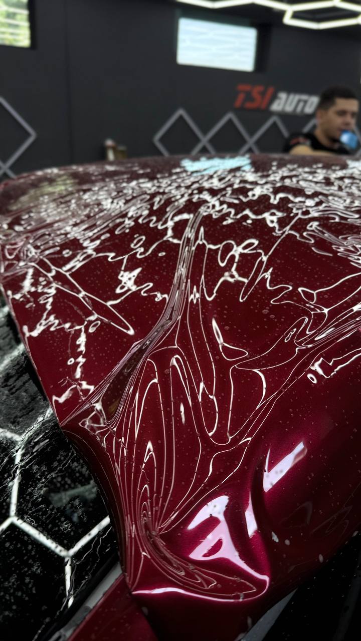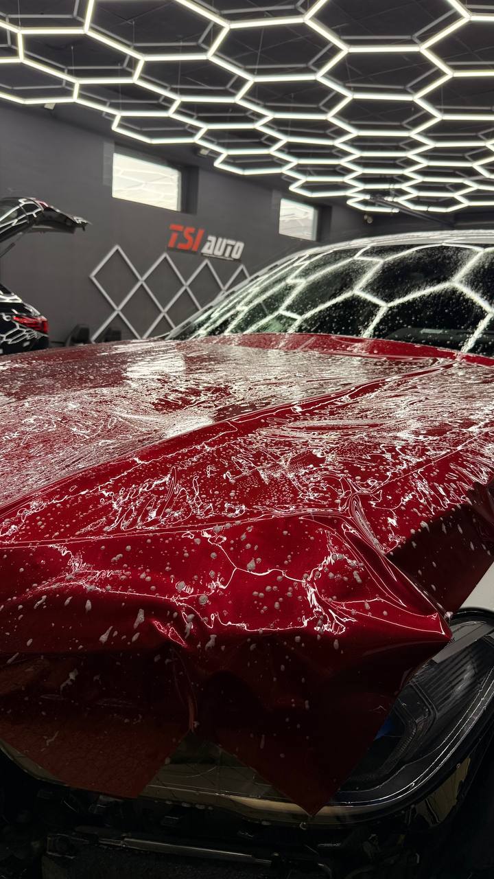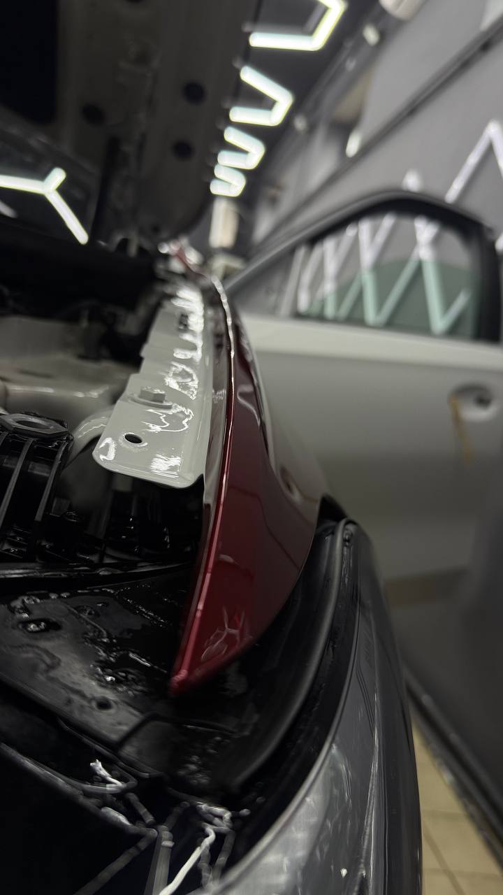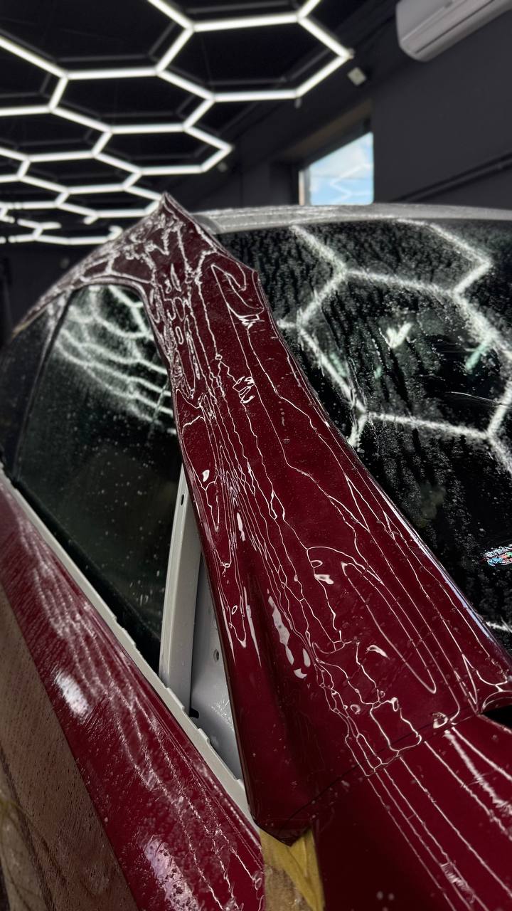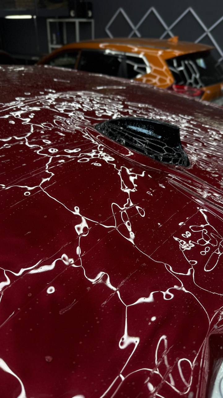 Пленка обладает высоким гидрофобным эффектом и грязь не будет задерживаться на кузове. Ну и самое главное это защита, каждый оклеенный элемент выполнен с подворотом пленки по периметру. Сколы и царапины больше не угрожают оклеенным кузовным элементам данного автомобиля, и если вдруг произойдет неприятная ситуация с мелким ДТП к примеру во дворе, с большей долей вероятности этот вопрос решиться заменой пленки на отдельном элементе. Так же автомобиль обрел на долго гарантированный блеск, так как пленка имеет самозаживляющий эффект и мелкие риски и царапинки будут затягиваться под воздействием температуры.