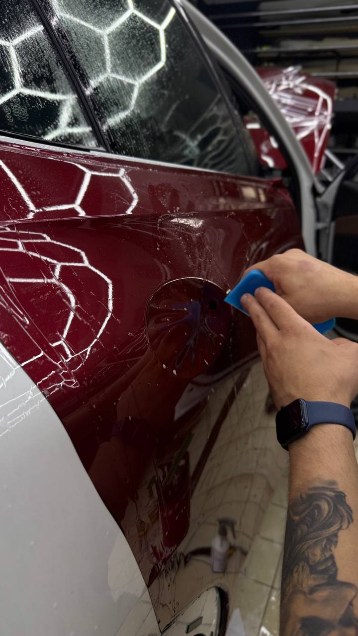- После оклейки всех элементов автомобиль полностью собираем и делаем финишную коррекцию пленки.
