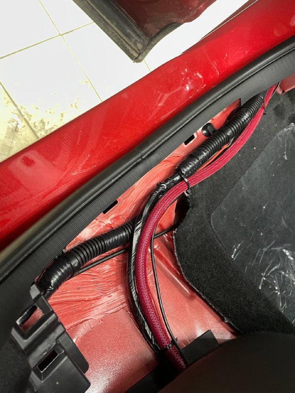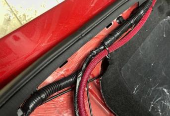 Силовая проводка уложена по штатным местам, с обязательной установкой предохранителя под капотом. Управляет системой по прежнему штатное головное устройство. При этом звучание аудиосистемы в автомобиле стало намного приятнее. Смотрите фото выполненных работ ниже.