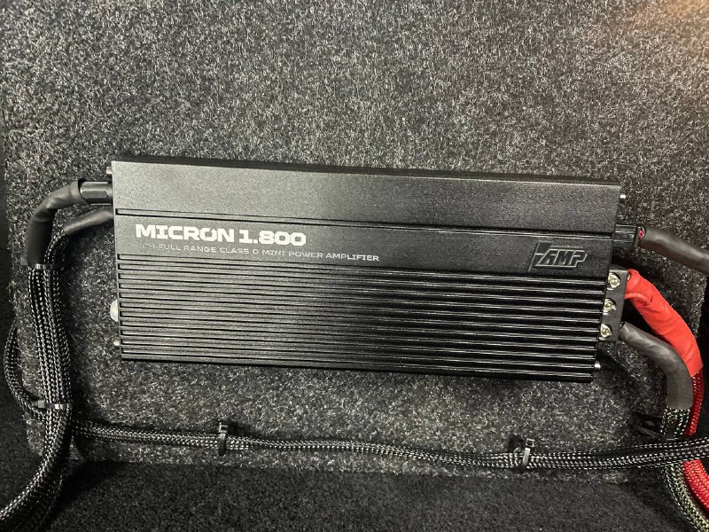 В распоряжении нашего центра большой ассортимент магнитол и переходных рамок, практически для всех автомобилей. Всё установленное оборудование было куплено у нас. Мы выполняем услуги под ключ - продажа, установка и настройка оборудования для автозвука. На данном автомобиле мы установили усилитель AMP Micron 1.800. Выбор сабвуфера для данного авто остановили на Focal SUB 10.
