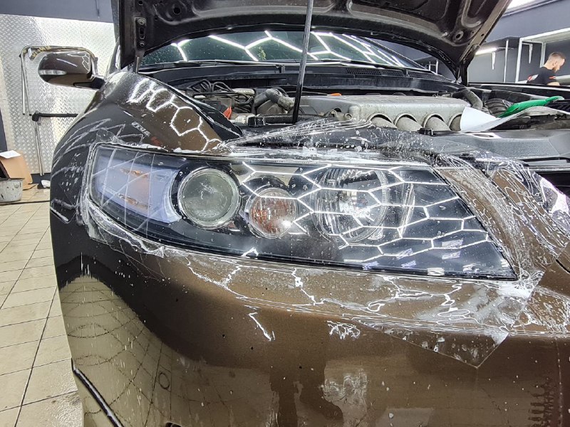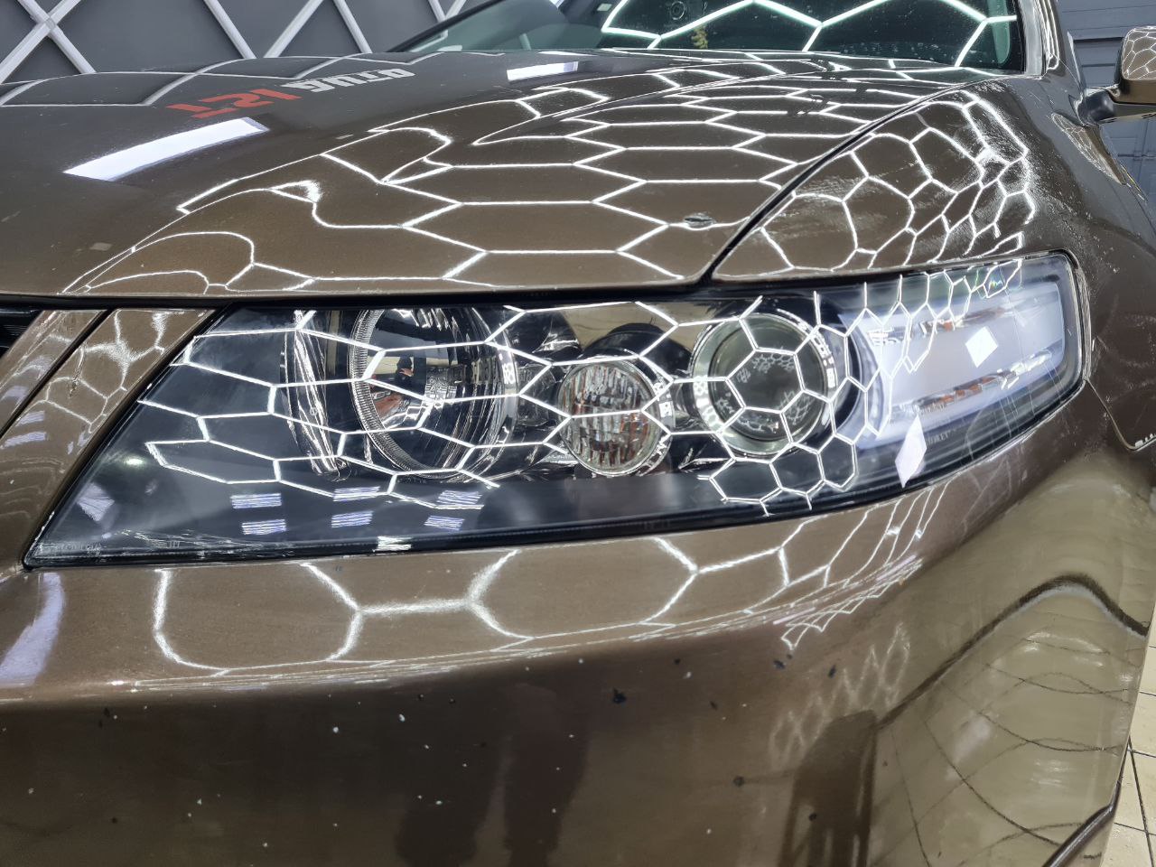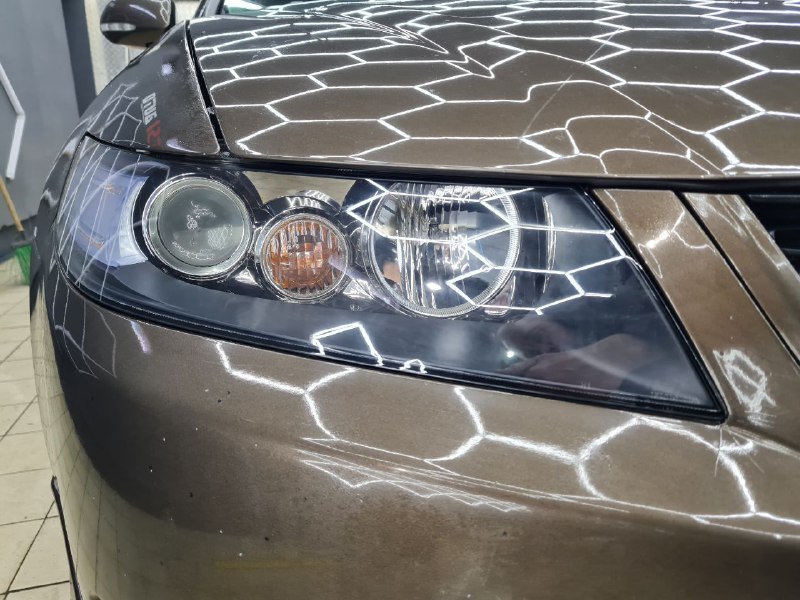 Мы потратили 4 часа на обслуживание Honda Accord, что включало полировку и оклейку защитной пленкой. Важно подчеркнуть, что все процедуры были выполнены без демонтажа фар.