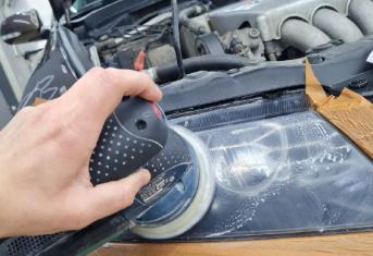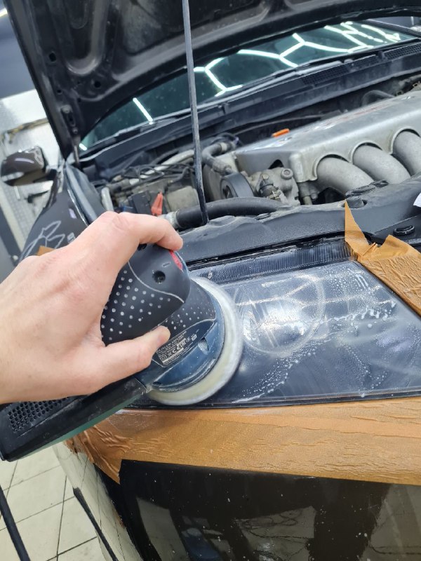 - Полируем фары машинкой до состояния полной прозрачности стекла.