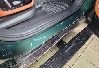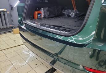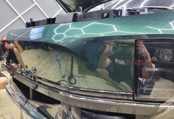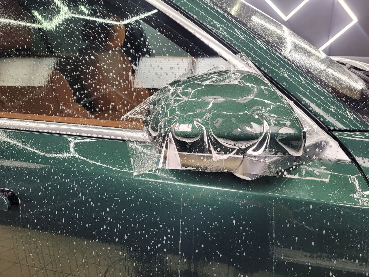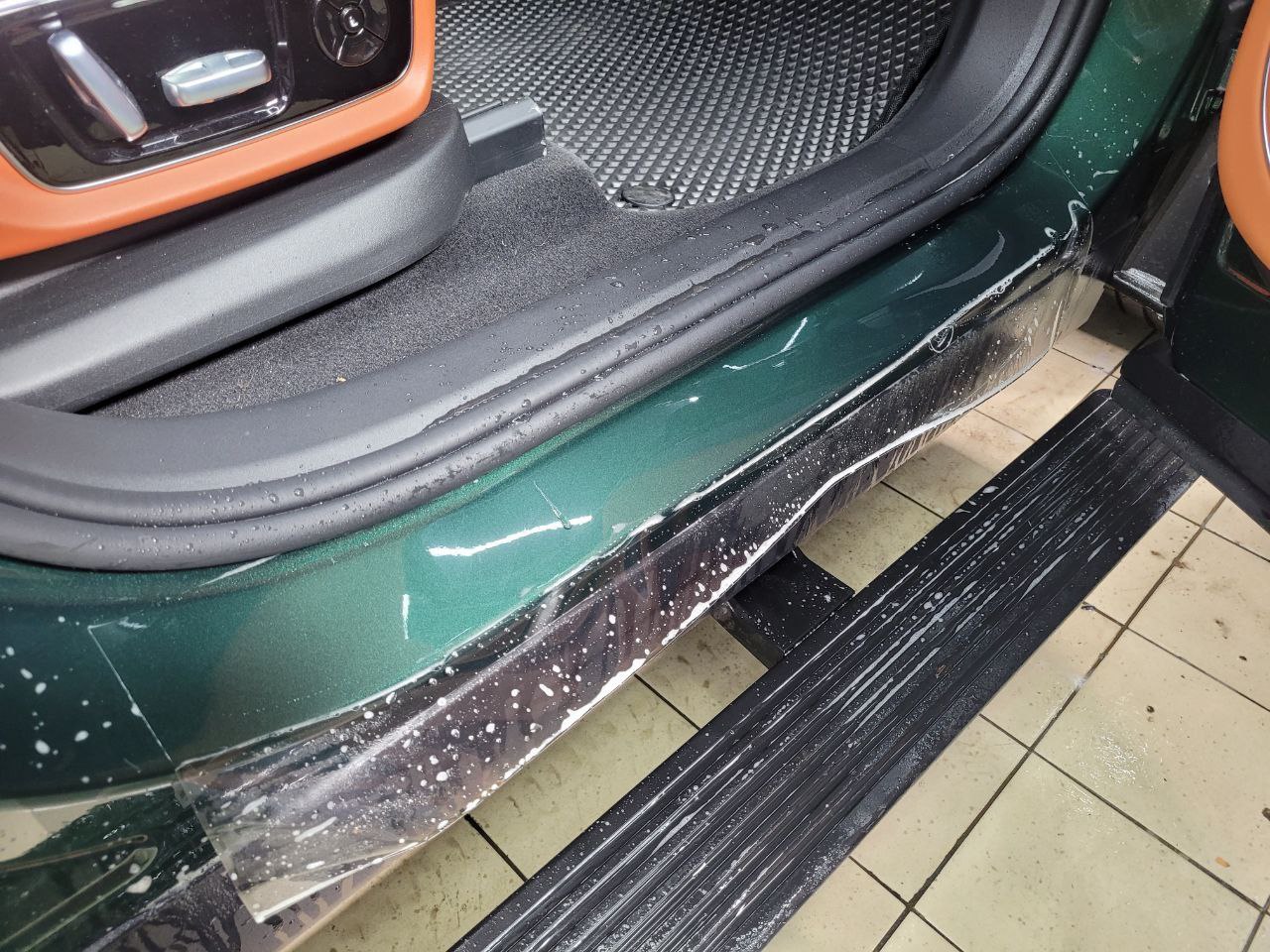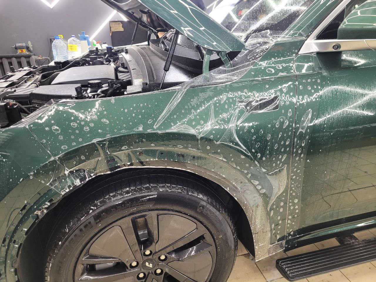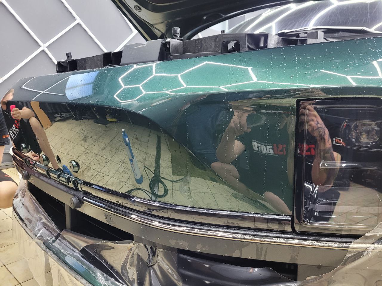 Далее не о процессе, а о конечном результате который получается на данном авто. Автомобиль будет меньше пачкаться, пленка обладает высоким гидрофобным эффектом и грязь не будет задерживаться на кузове. Ну и самое главное это защита, каждый оклеенный элемент выполнен с подворотом пленки по периметру. Сколы и царапины больше не угрожают ЛКП оклеенным элементам данного автомобиля, и если вдруг произойдет неприятная ситуация с мелким ДТП к примеру во дворе, с большей долей вероятности этот вопрос решиться заменой пленки на отдельном элементе. Так же автомобиль обрел на долго гарантированный блеск, так как пленка имеет самозаживляющий эффект и мелкие риски и царапинки будут затягиваться под воздействием температуры.