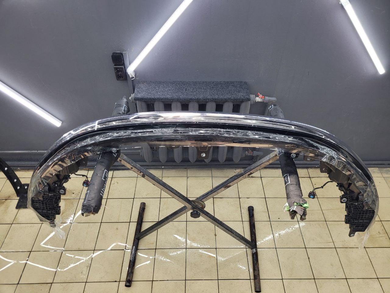 - Арматурные работы – снимаем переднюю блок фару, бампер из-за его сложной формы. Это необходимо чтобы сделать максимально качественные подвороты пленки.