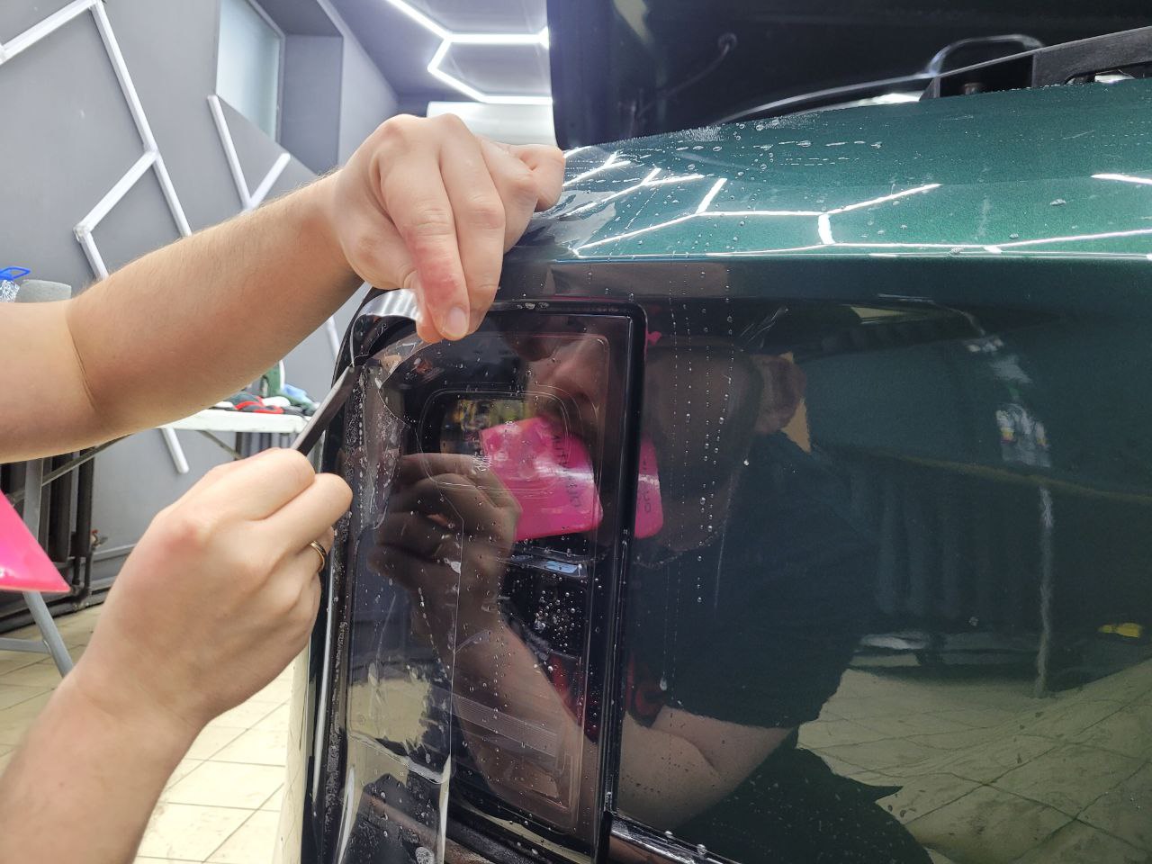- После оклейки всех элементов автомобиль полностью собираем и делаем финишную коррекцию пленки.
