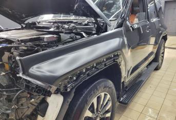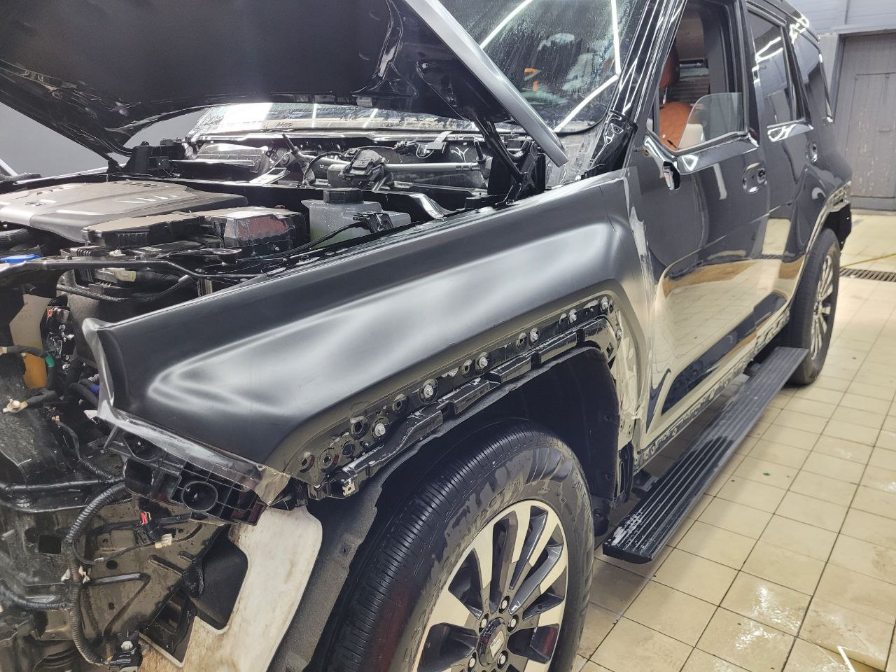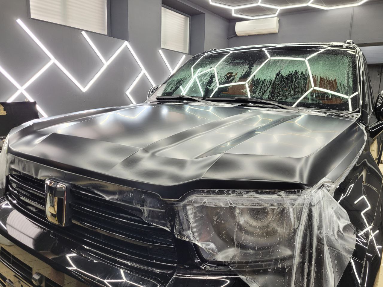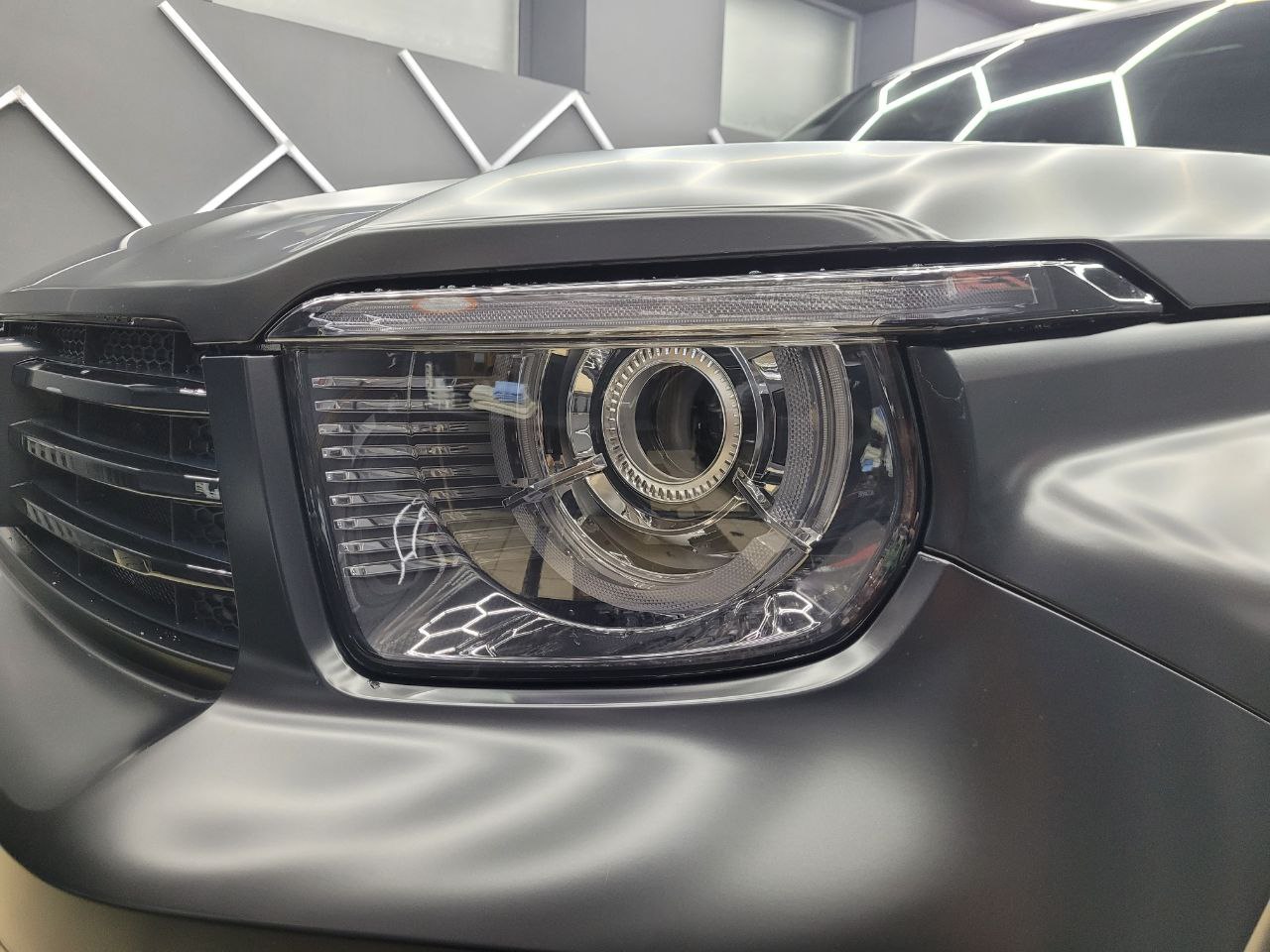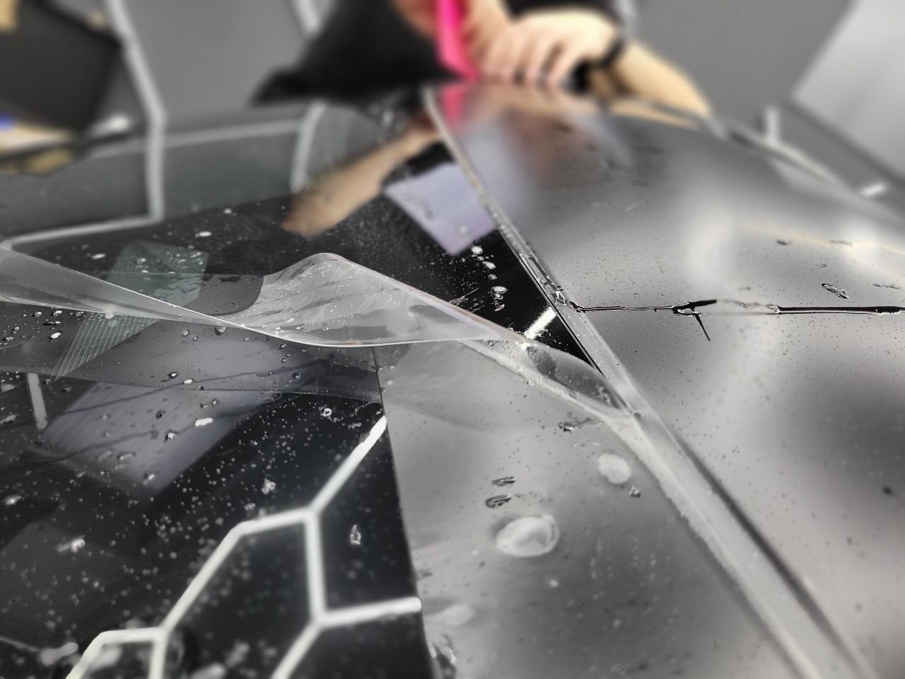 - Арматурные работы – снимаем решетку, расширители, зеркала бампер и тд. При оклейке в матовый или сатиновый полиуретан, арматурные работы просто необходимы, так как важно сделать максимально качественные подвороты пленки иначе есть риск что заводской глянец будет просматриваться по краям детали!