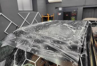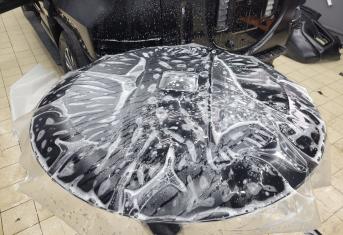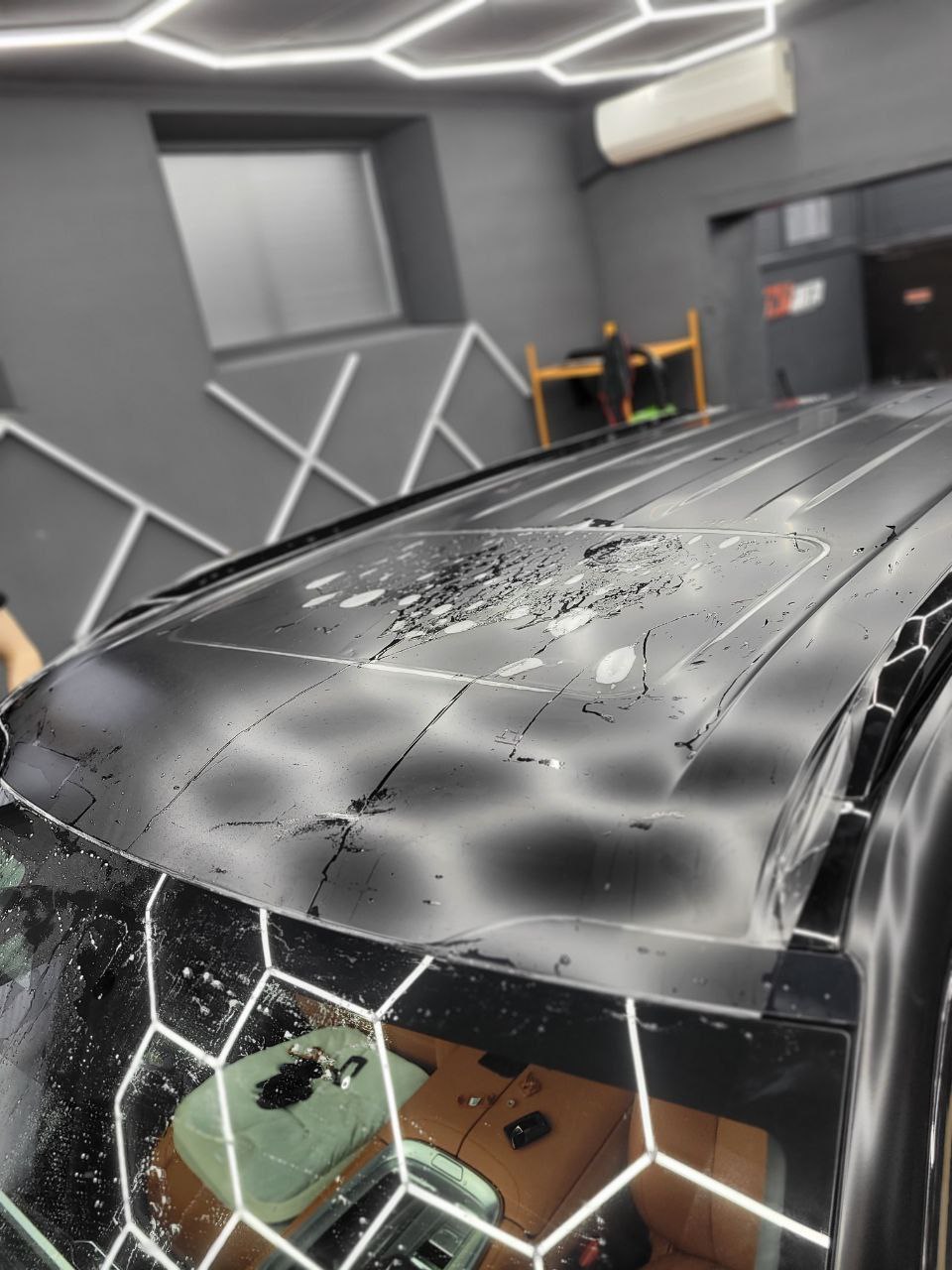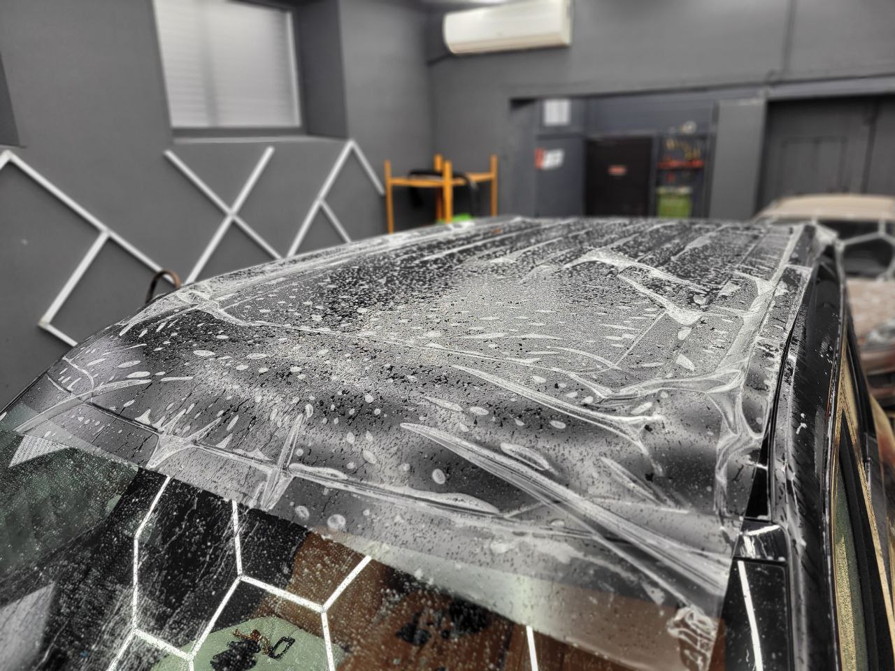 В работе применяем полиуретановую пленку NAR, толщиной 190 микрон. Эта пленка обладает функцией самовосстановления небольших царапин при высокой температуре. Клиент выбрал вариант полной оклейки своего автомобиля в сатин.