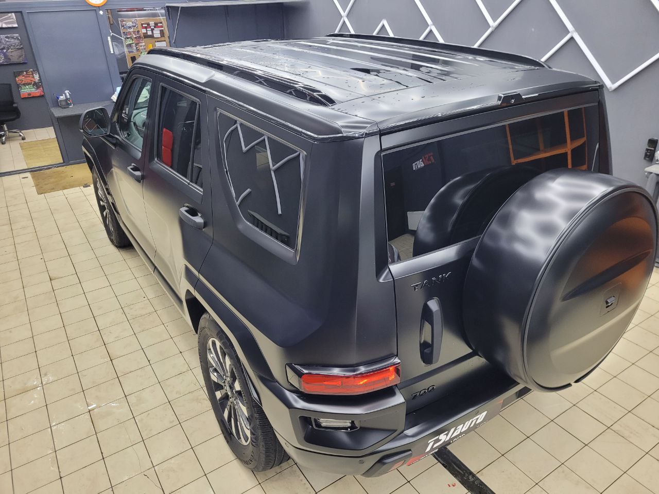 Мы потратили 5 рабочих дня на полную оклейку Танк 700. Так же владельцу в обязательном порядке будет необходимо приехать к нам на контрольный осмотр пленки не позднее чем через 7 дней, это обязательное условие гарантийных обязательств!