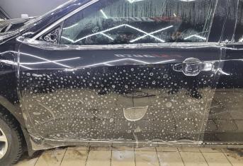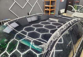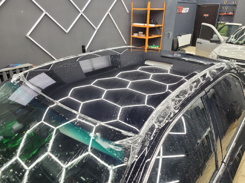 В работе применяем полиуретановую пленку NAR, толщиной 190 микрон. Эта пленка обладает функцией самовосстановления небольших царапин при высокой температуре. Клиент выбрал вариант полной оклейки своего автомобиля.