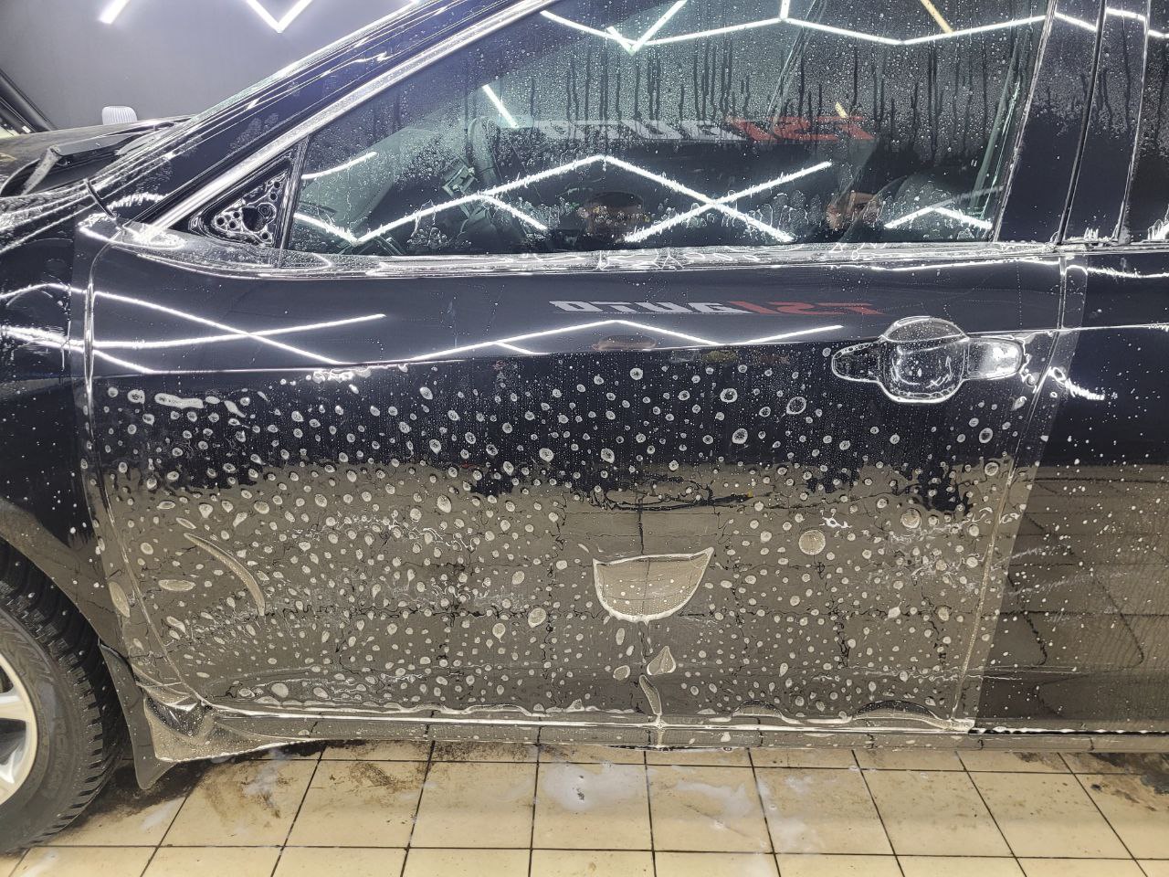 Далее не о процессе, а о конечном результате который получается на данном авто. Автомобиль будет меньше пачкаться, пленка обладает высоким гидрофобным эффектом и грязь не будет задерживаться на кузове. Ну и самое главное это защита, каждый оклеенный элемент выполнен с подворотом пленки по периметру. Сколы и царапины больше не угрожают ЛКП данного автомобиля, и если вдруг произойдет неприятная ситуация с мелким ДТП к примеру во дворе, с большей долей вероятности этот вопрос решиться заменой пленки на отдельном элементе. Так же автомобиль обрел на долго гарантированный блеск, так как пленка имеет самозаживляющий эффект и мелкие риски и царапинки будут затягиваться под воздействием температуры.