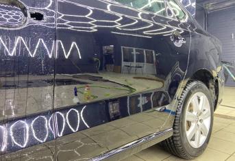 - Оценка состояния ЛКП – осмотр, выявление дефектов и элементов с вторичным окрасом. При необходимости можно сделать легкую полировку, но на данном авто этого не потребовалось.