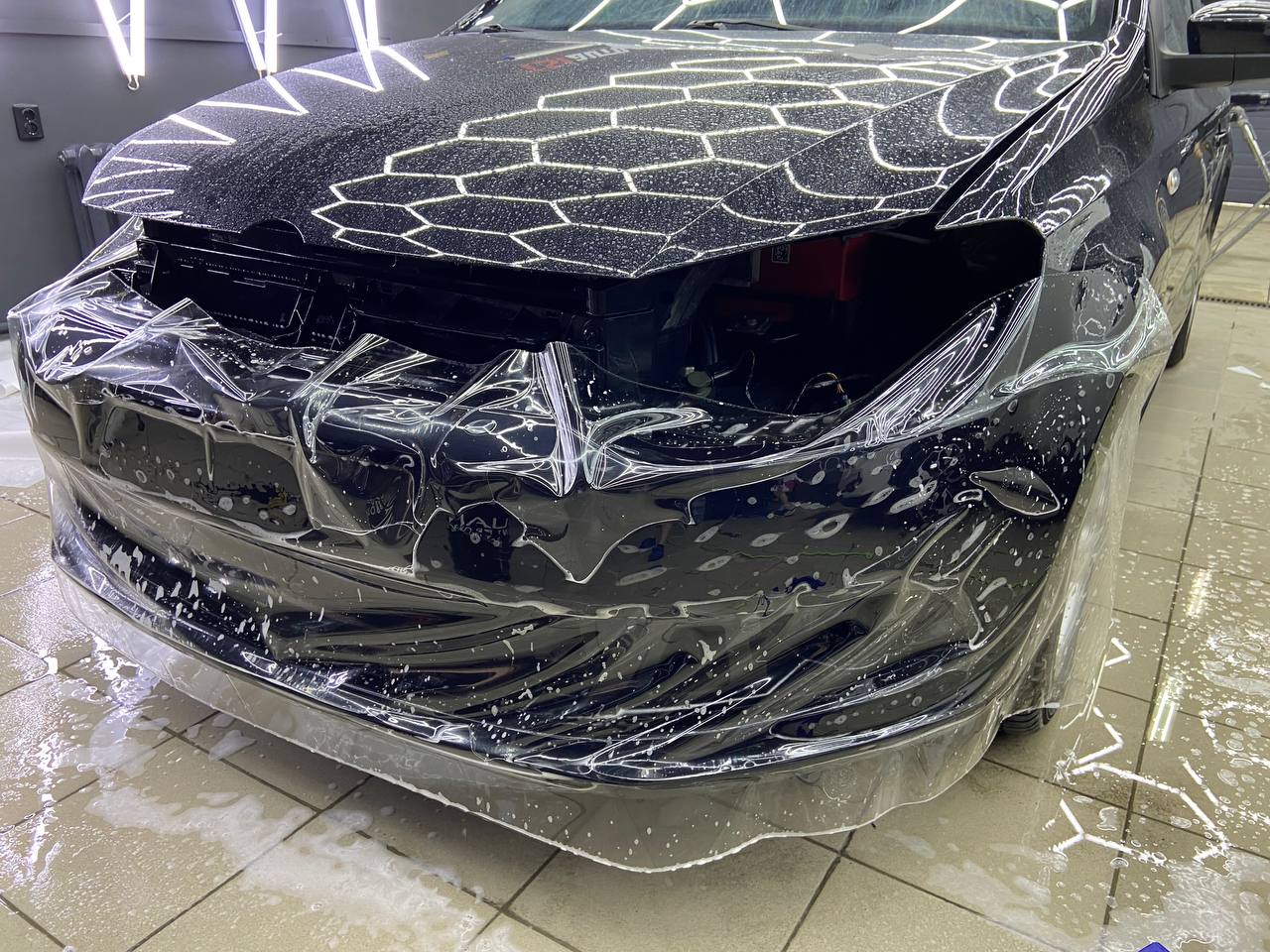 - Арматурные работы – снимаем решетку, бампер из-за его сложной формы. Это необходимо чтобы сделать максимально качественные подвороты пленки.