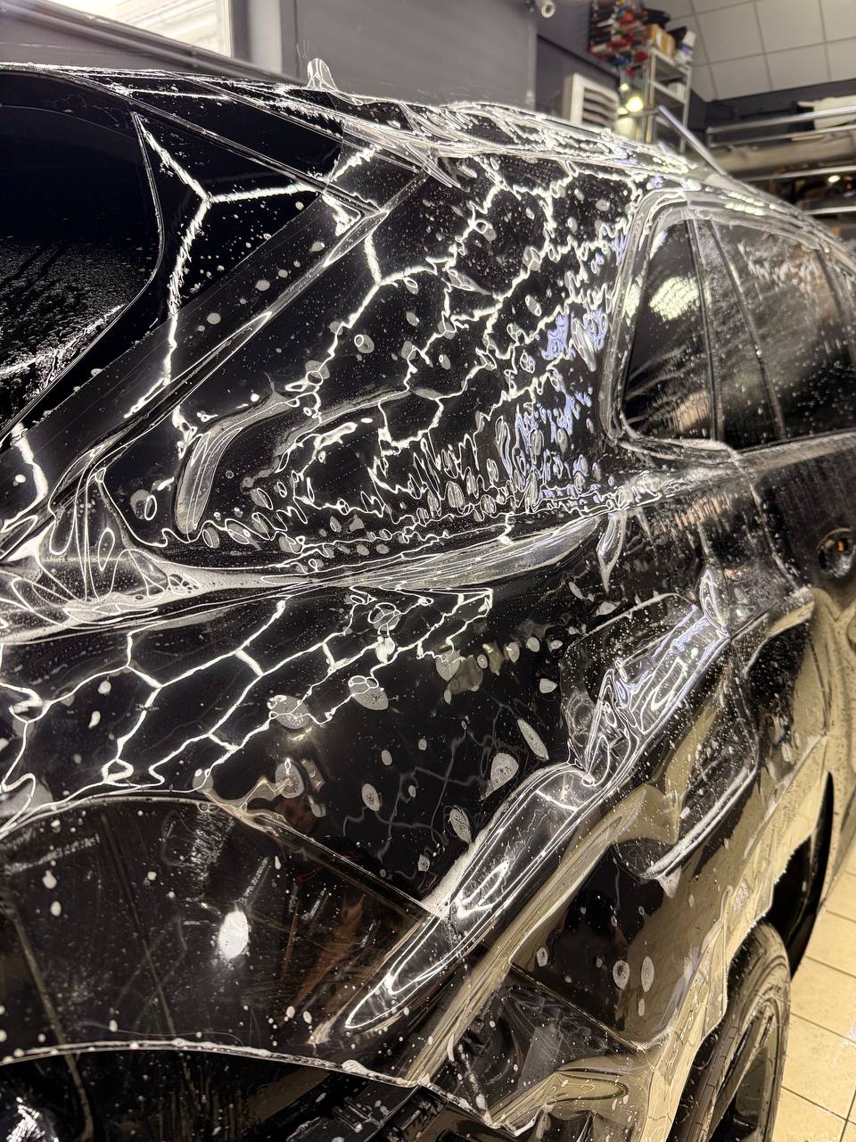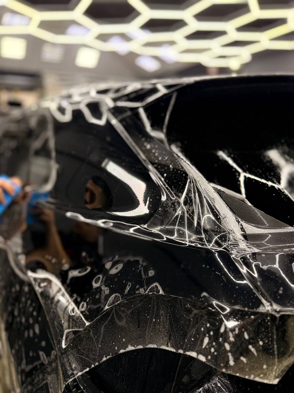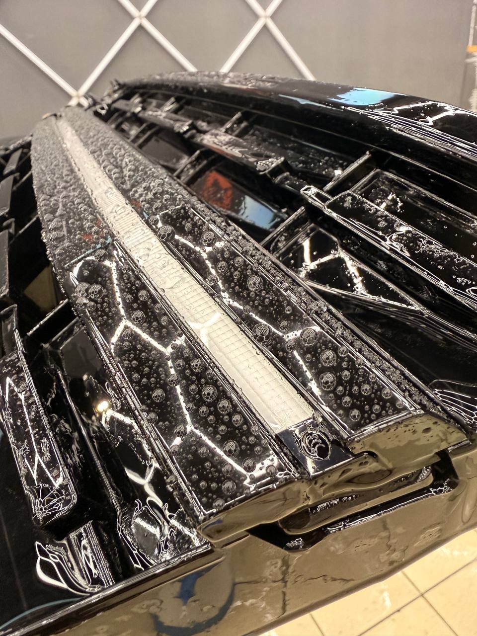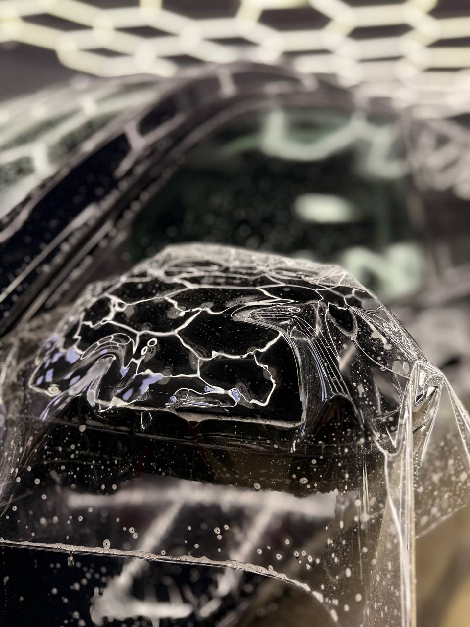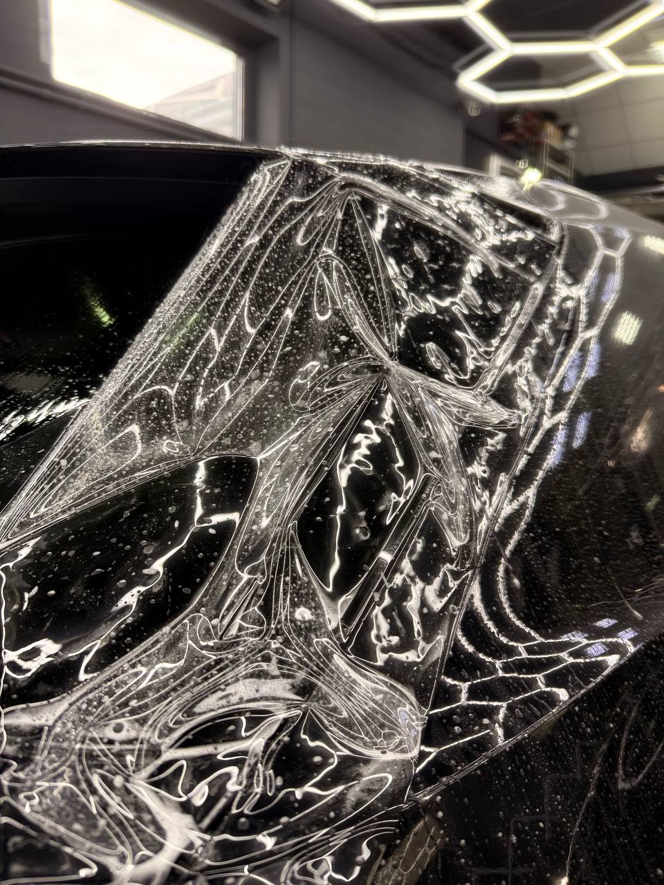 Далее не о процессе, а о конечном результате который получается на данном авто. Автомобиль будет меньше пачкаться, пленка обладает высоким гидрофобным эффектом и грязь не будет задерживаться на кузове. Ну и самое главное это защита, каждый оклеенный элемент выполнен с подворотом пленки по периметру. Сколы и царапины больше не угрожают ЛКП данного автомобиля, и если вдруг произойдет неприятная ситуация с мелким ДТП к примеру во дворе, с большей долей вероятности этот вопрос решиться заменой пленки на отдельном элементе. Так же автомобиль обрел на долго гарантированный блеск, так как пленка имеет самозаживляющий эффект и мелкие риски и царапинки будут затягиваться под воздействием температуры.