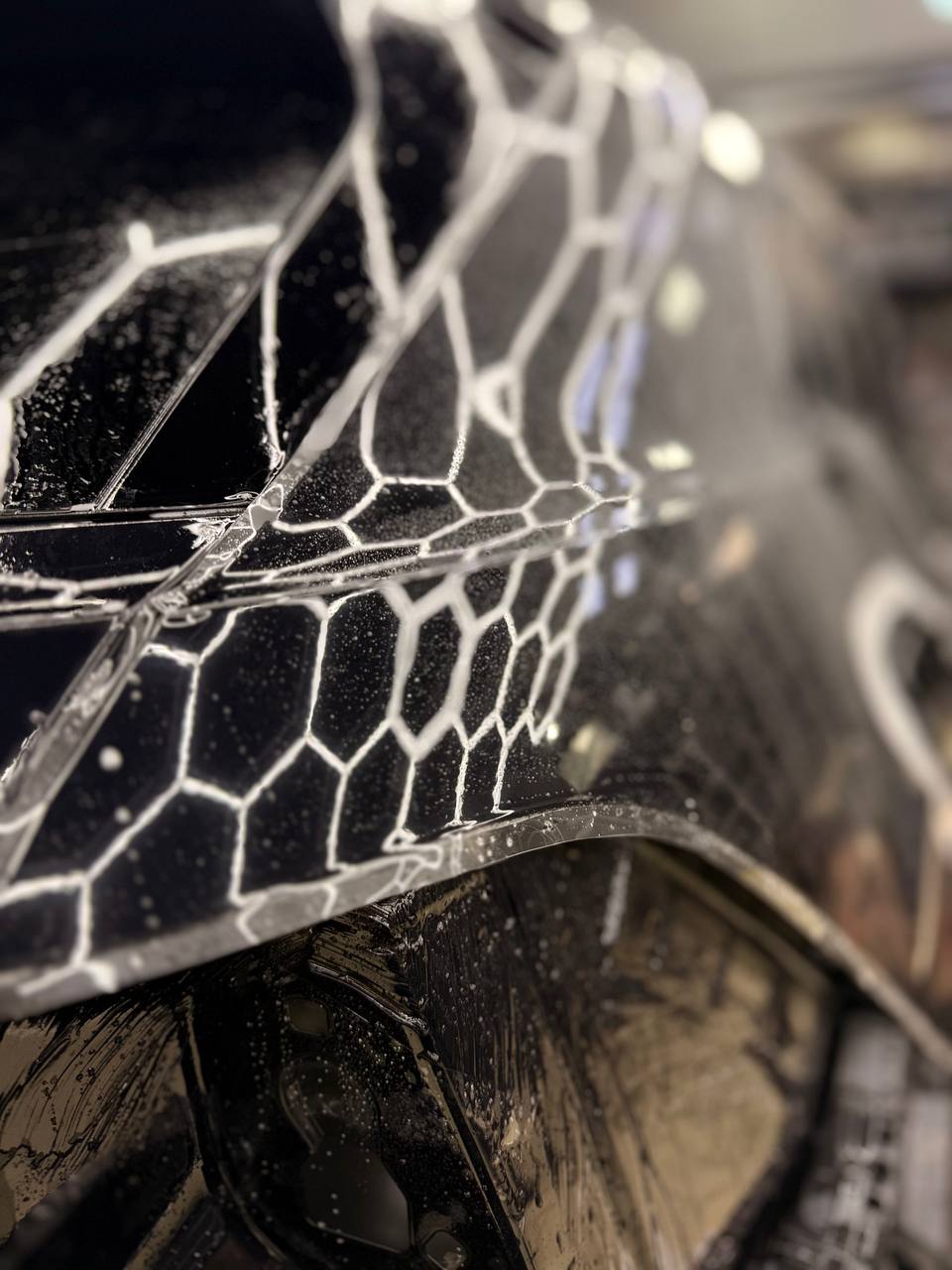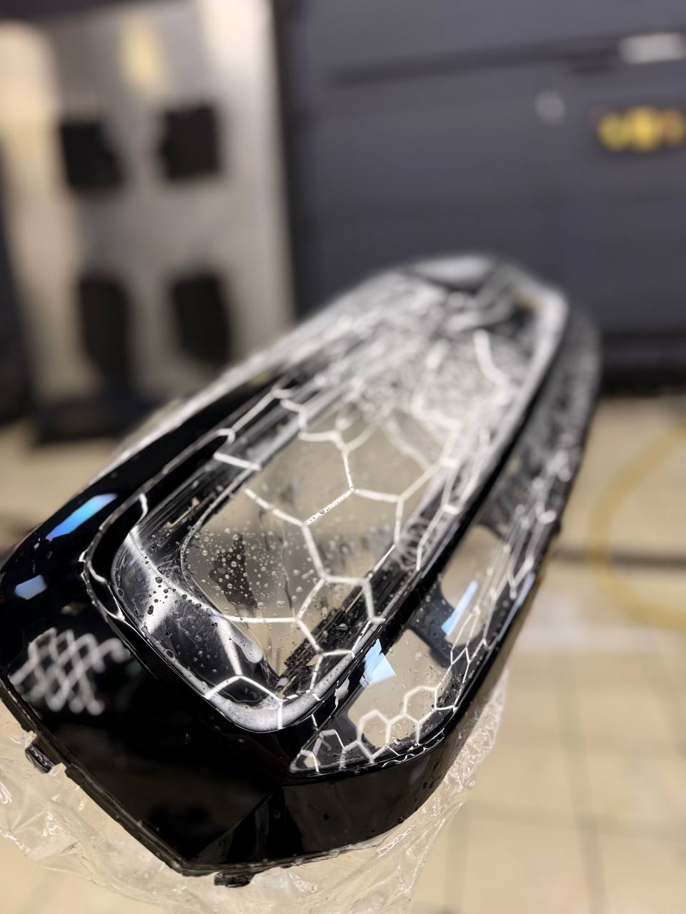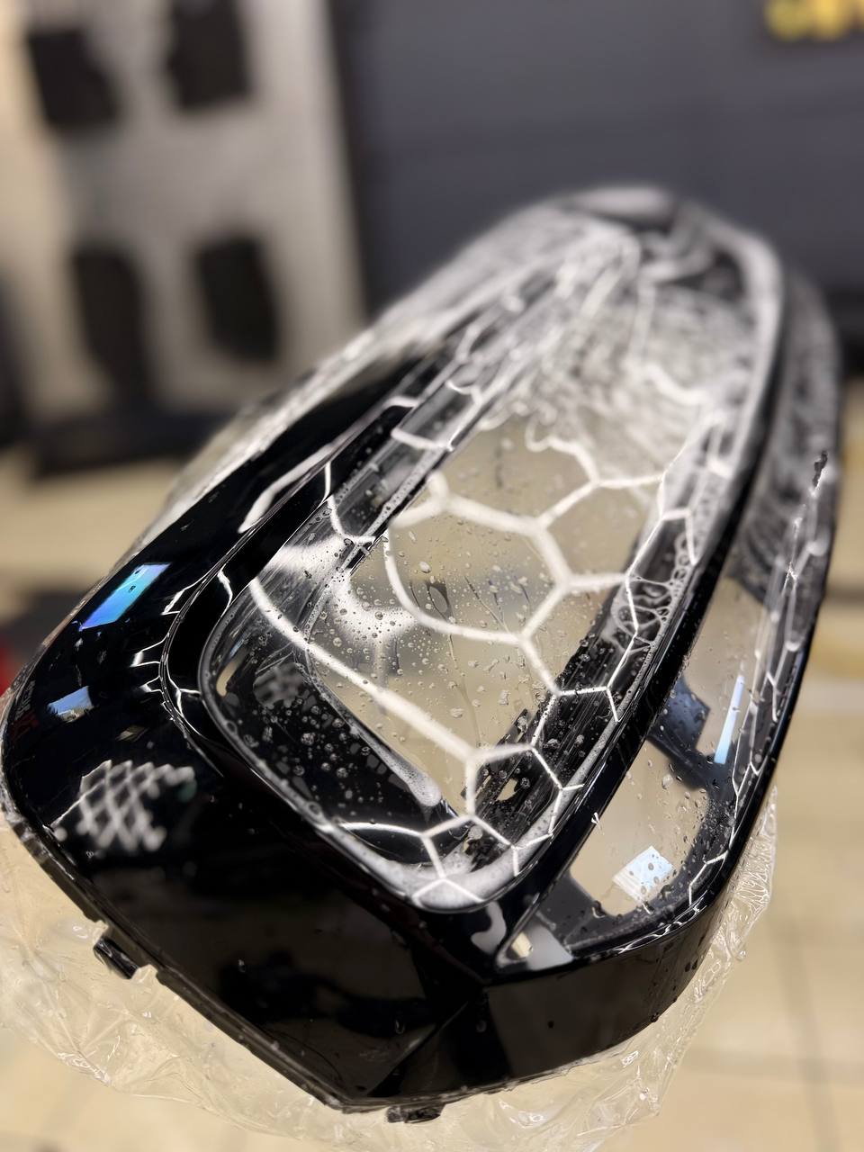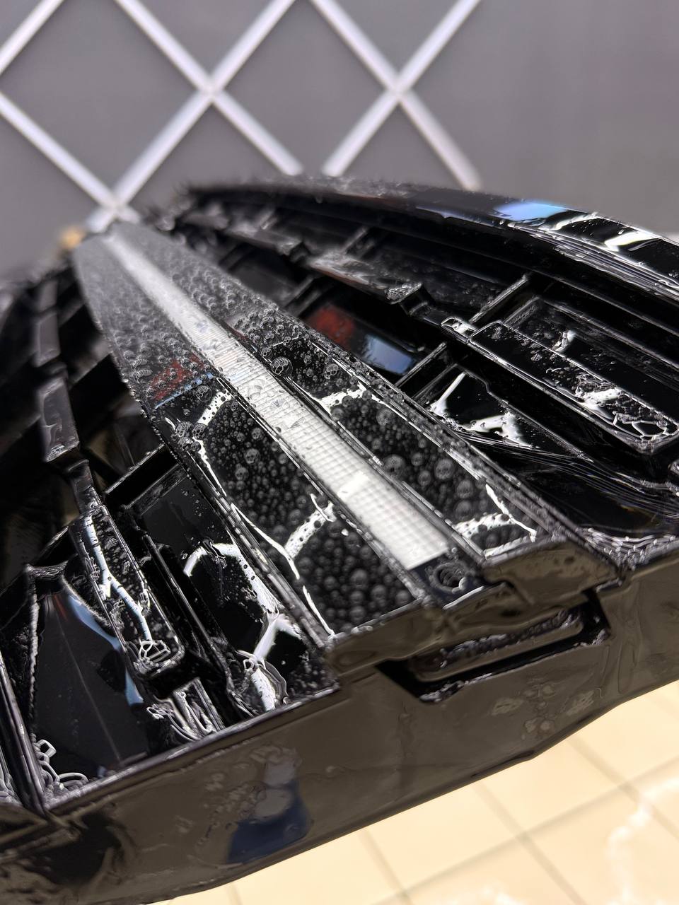 Далее не о процессе, а о конечном результате который получается на данном авто. Автомобиль будет меньше пачкаться, пленка обладает высоким гидрофобным эффектом и грязь не будет задерживаться на кузове. Ну и самое главное это защита, каждый оклеенный элемент выполнен с подворотом пленки по периметру. Сколы и царапины больше не угрожают ЛКП данного автомобиля, и если вдруг произойдет неприятная ситуация с мелким ДТП к примеру во дворе, с большей долей вероятности этот вопрос решиться заменой пленки на отдельном элементе. Так же автомобиль обрел на долго гарантированный блеск, так как пленка имеет самозаживляющий эффект и мелкие риски и царапинки будут затягиваться под воздействием температуры.