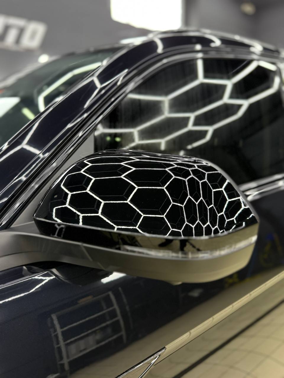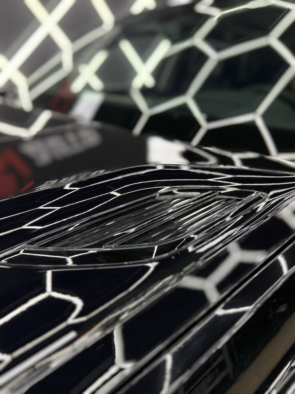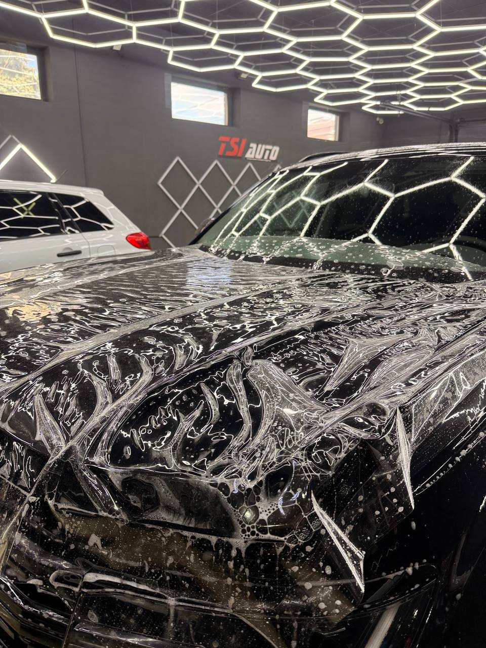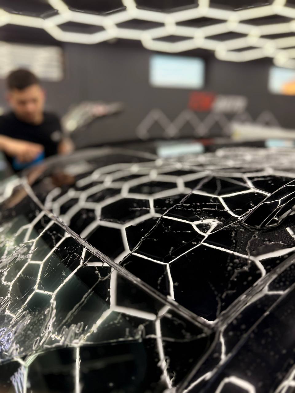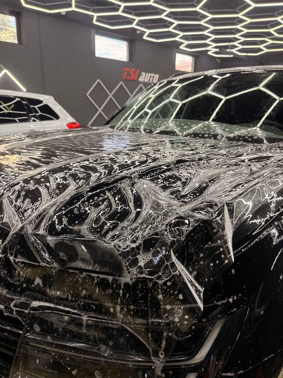 Далее не о процессе, а о конечном результате который получается на данном авто. Автомобиль будет меньше пачкаться, пленка обладает высоким гидрофобным эффектом и грязь не будет задерживаться на кузове. Ну и самое главное это защита, каждый оклеенный элемент выполнен с подворотом пленки по периметру. Сколы и царапины больше не угрожают ЛКП данного автомобиля, и если вдруг произойдет неприятная ситуация с мелким ДТП к примеру во дворе, с большей долей вероятности этот вопрос решиться заменой пленки на отдельном элементе. Так же автомобиль обрел на долго гарантированный блеск, так как пленка имеет самозаживляющий эффект и мелкие риски и царапинки будут затягиваться под воздействием температуры.