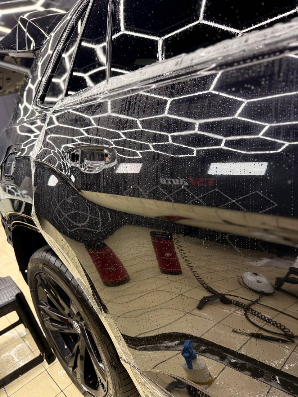 - Оценка состояния ЛКП – осмотр, выявление дефектов и элементов с вторичным окрасом. При необходимости можно сделать легкую полировку, но на данном авто этого не потребовалось.