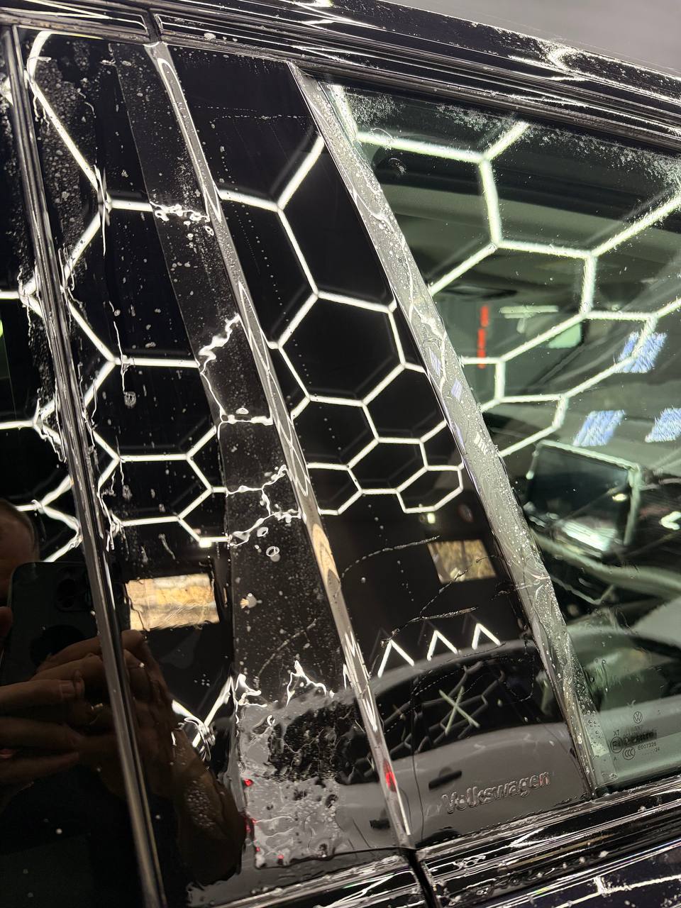 Мы потратили 5 рабочих дня на полную оклейку Volkswagen Teramont X. Так же владельцу в обязательном порядке будет необходимо приехать к нам на контрольный осмотр пленки не позднее чем через 7 дней, это обязательное условие гарантийных обязательств!