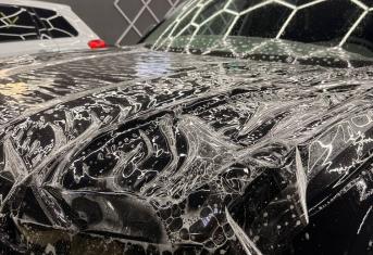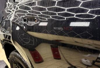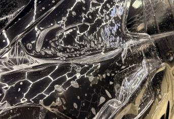 В работе применяем полиуретановую пленку NAR, толщиной 190 микрон. Эта пленка обладает функцией самовосстановления небольших царапин при высокой температуре. Клиент выбрал вариант полной оклейки своего автомобиля.