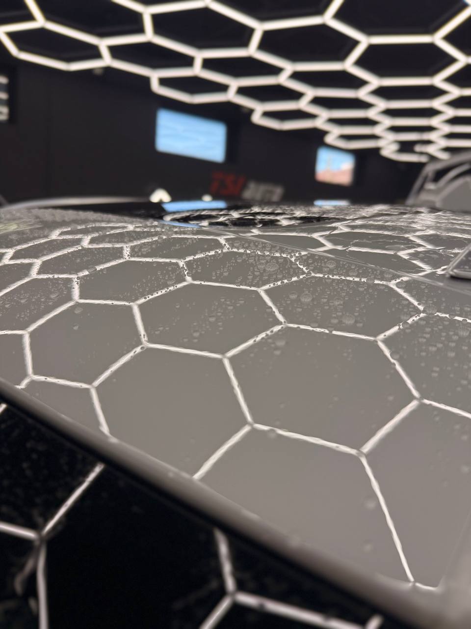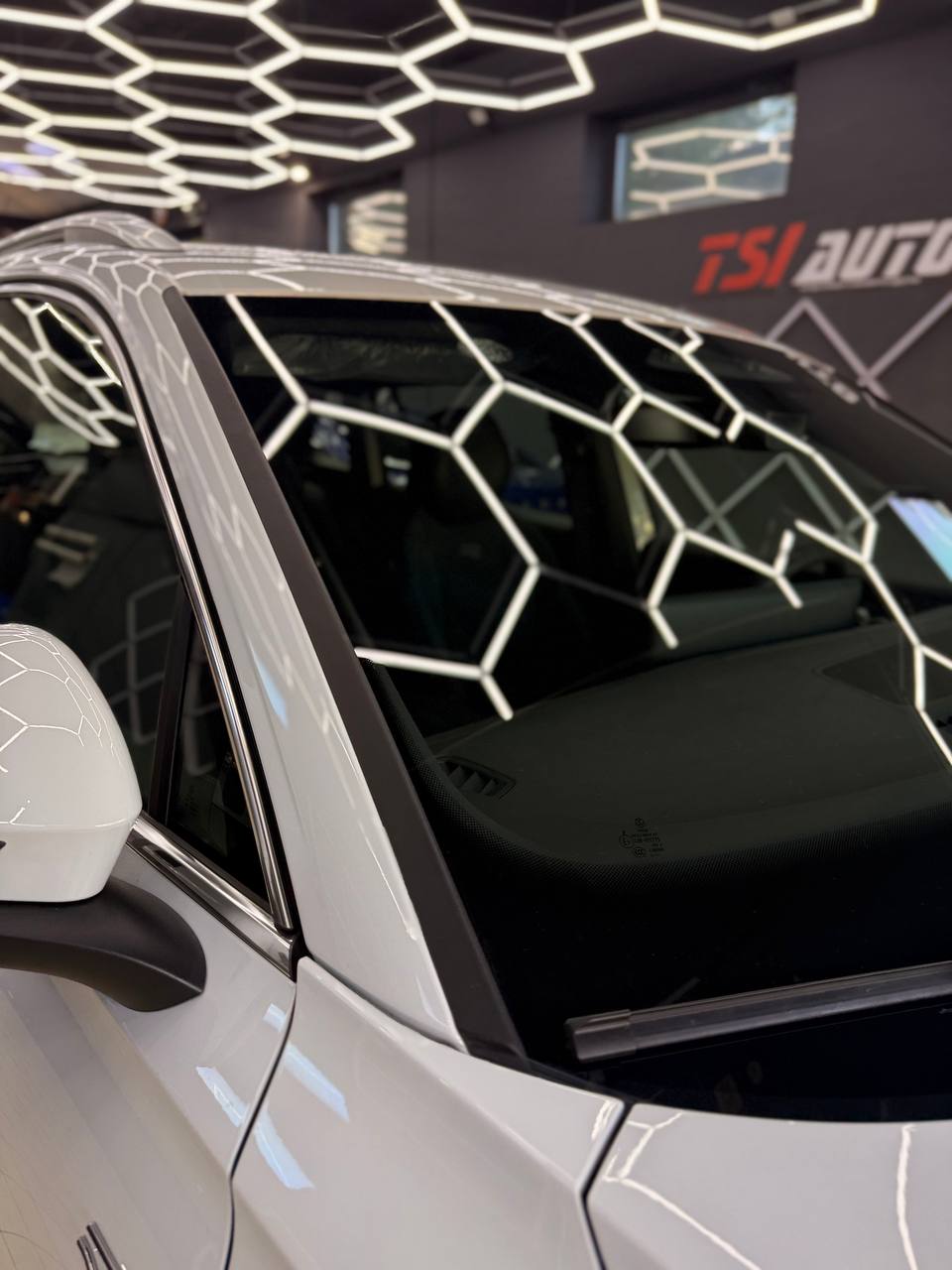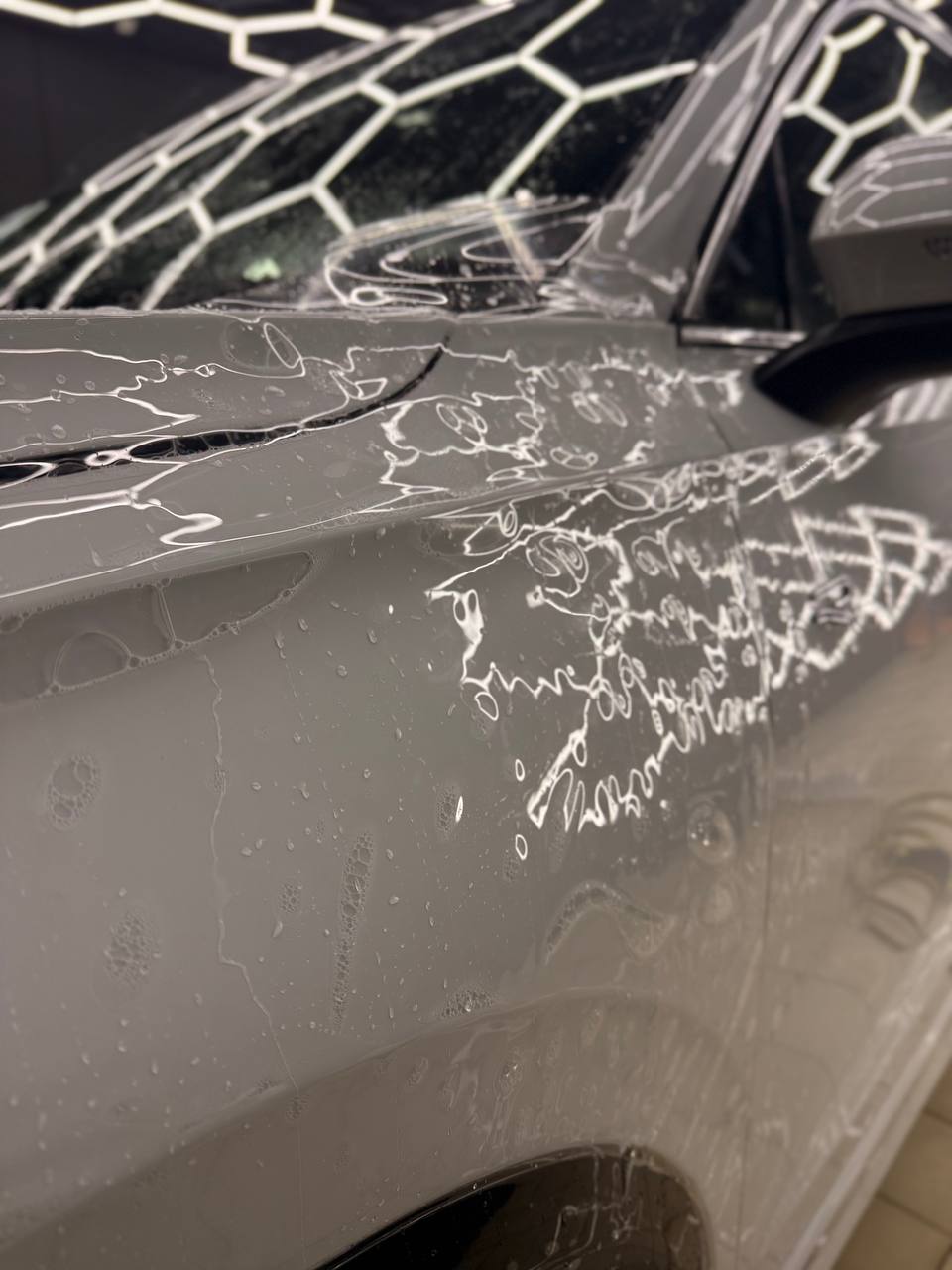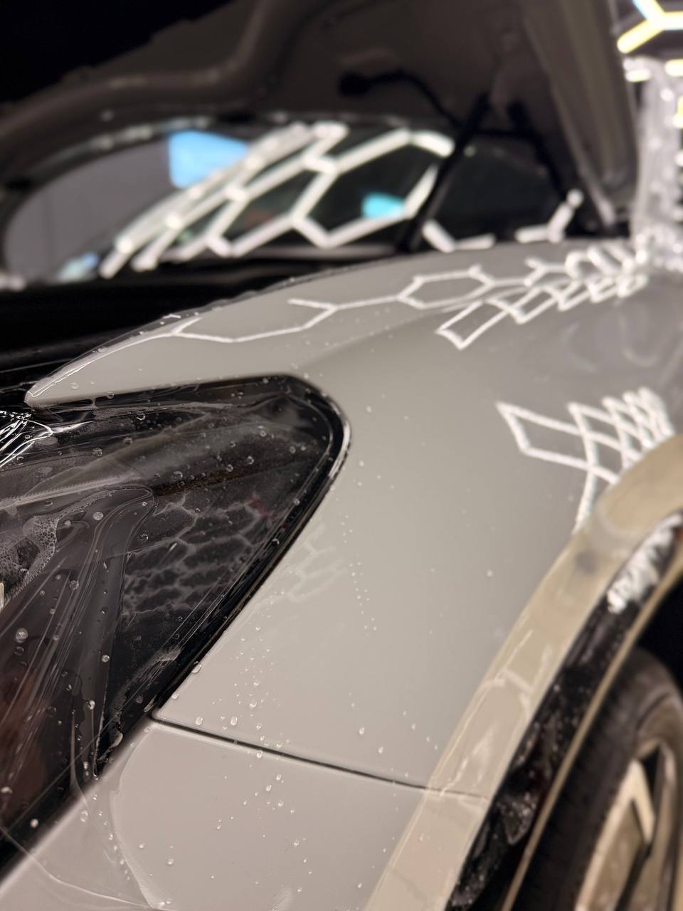 Далее не о процессе, а о конечном результате который получается на данном авто. Автомобиль будет меньше пачкаться, пленка обладает высоким гидрофобным эффектом и грязь не будет задерживаться на кузове. Ну и самое главное это защита, каждый оклеенный элемент выполнен с подворотом пленки по периметру. Сколы и царапины больше не угрожают ЛКП данного автомобиля, и если вдруг произойдет неприятная ситуация с мелким ДТП к примеру во дворе, с большей долей вероятности этот вопрос решиться заменой пленки на отдельном элементе. Так же автомобиль обрел на долго гарантированный блеск, так как пленка имеет самозаживляющий эффект и мелкие риски и царапинки будут затягиваться под воздействием температуры.