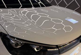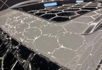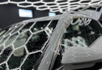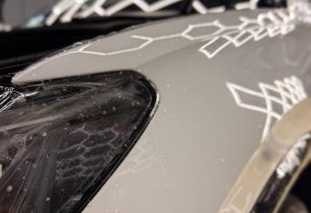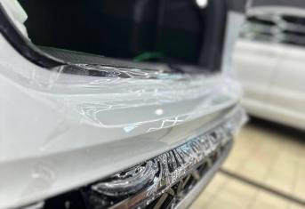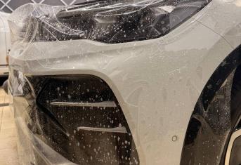 В работе применяем полиуретановую пленку NAR, толщиной 190 микрон. Эта пленка обладает функцией самовосстановления небольших царапин при высокой температуре. Клиент выбрал для своего автомобиля пакет Трасса Расширенный, что подразумевает оклейку передней части кузова. Более подробно с пакетами оклейки вы можете ознакомится в соответствующем разделе на нашем сайте.